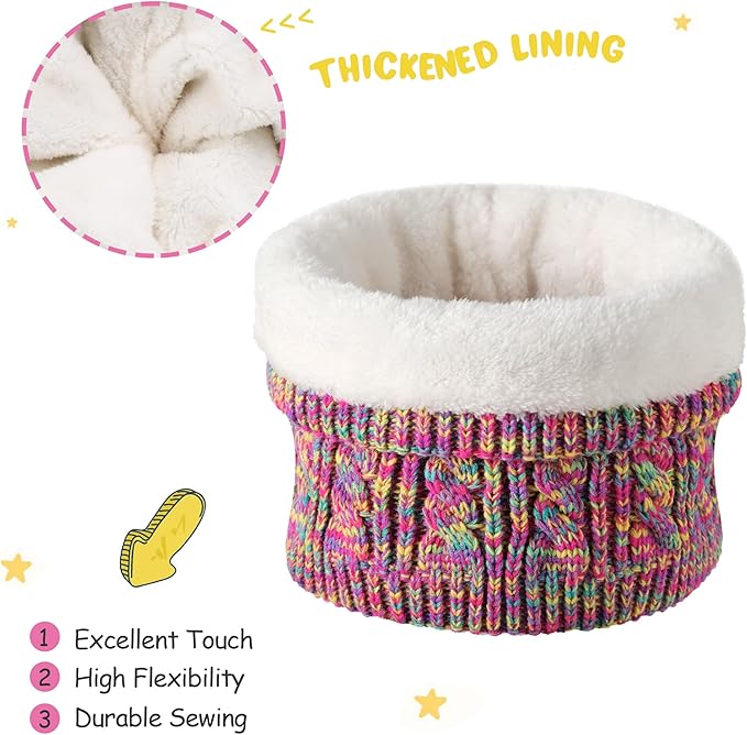 - Kids Neck Warmer: This colorful infinity kids scarf features a double layer lined, with a soft and delicate texture that resists shedding and pilling. Outstanding elasticity ensures a snug fit around your child's neck, the loop design offers convenient wearing and removal with enhanced safety. Put on this pretty windproof toddler scarf and let your child lock warmth even during the cold winter days!