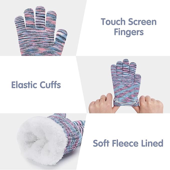 - High Quality Material: These kids winter hats and gloves sets with scarf are made from 100% acrylic, a skin friendly and safe material. The interior features a soft and comfy fleece lining, offering the warmest care for your little one's delicate skin. The diverse rainbow color combinations are bright and cool, making your child stand out in the crowd!