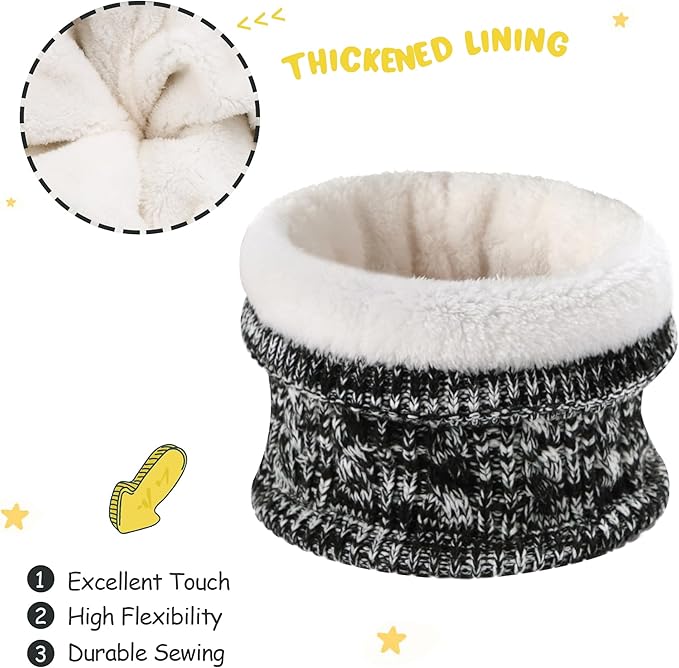 - Kids Neck Warmer: This colorful infinity kids scarf features a double layer lined, with a soft and delicate texture that resists shedding and pilling. Outstanding elasticity ensures a snug fit around your child's neck, the loop design offers convenient wearing and removal with enhanced safety. Put on this pretty windproof toddler scarf and let your child lock warmth even during the cold winter days!