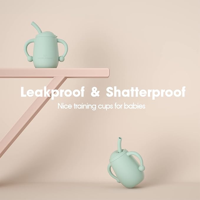 - LEAKPROOF, SHATTERPROOF: The liquid won't come out through the lid, it can keep the damage to a minimum and keep your child’s clothes and the floor nice and clean. The silicone training cup is shatterproof as well, it won't break when dropped