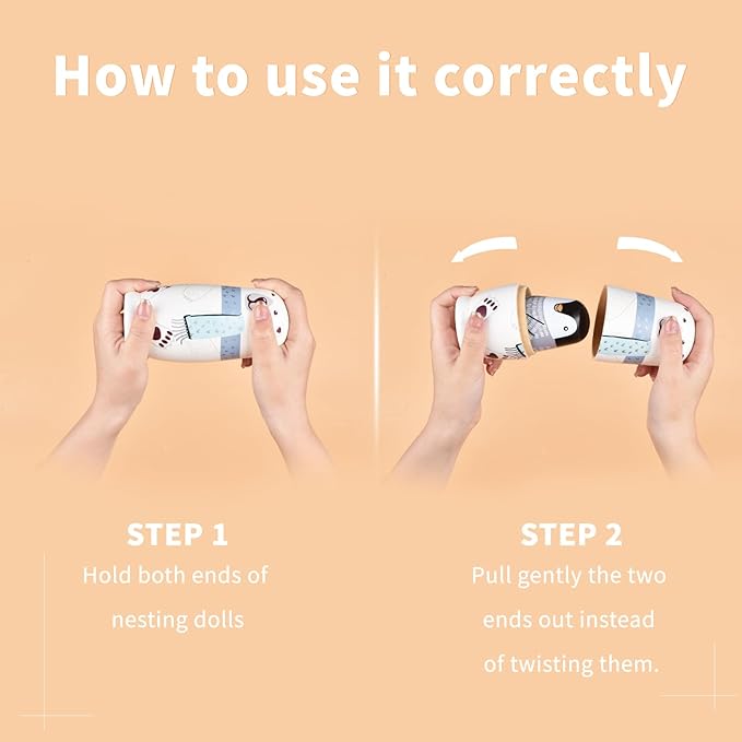 - Notes: Remember to close the nesting dolls after finishing playing, because they might shrink and will not match each other