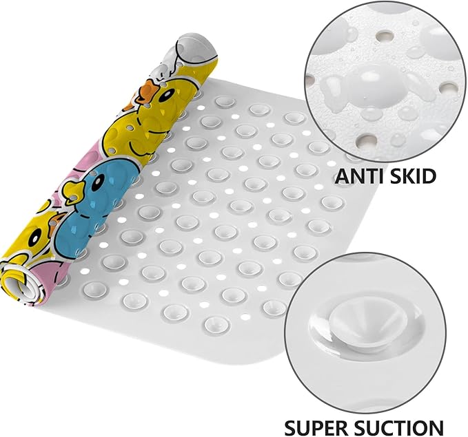 LNOND Bath Mat for Tub for Kids, Cartoon Duck Bathtub Mat, Kids Bath Mats for Bathroom Non Slip with Drain Holes and Suction Cups,Machine Washable (40 X 16 Inch)