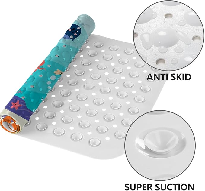 - [Kids Bathtub Mat]: The kids bathtub mat is 40 x 16 inches, which covers the full bathtub for more safety. Multiple uses, this kids bathtub mat can be used as a kids shower mat