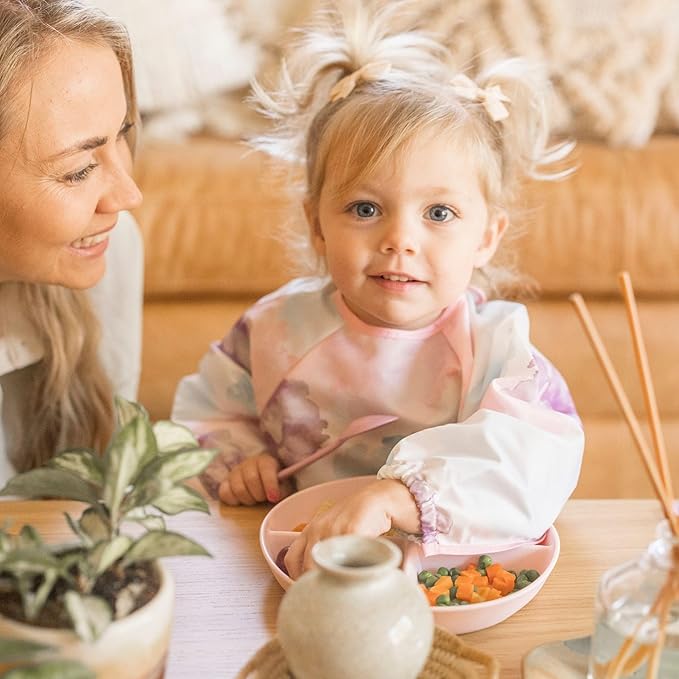 - Flexible Comfort: Our bibs move naturally with your child and feature a soft, flexible fit that won’t restrict play or movement. The lightweight smock style offers freedom and comfort through every meal.