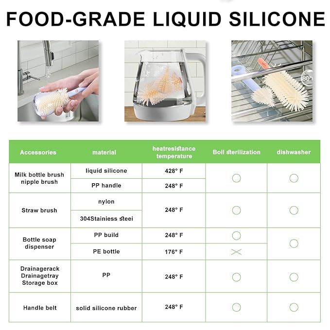 - ๐๐จ๐ฎ๐ซ ๐๐๐๐ฒโ๐ฌ ๐ก๐๐๐ฅ๐ญ๐ก ๐ข๐ฌ ๐ฉ๐๐ซ๐๐ฆ๐จ๐ฎ๐ง๐ญ:The BPA-free, odorless, flexible, and durable silicone brush head can be thoroughly cleaned and does not cause any damage to the bottle or nipples. Moreover, the PP materials and smooth-ball contact points do not cause any damage either.