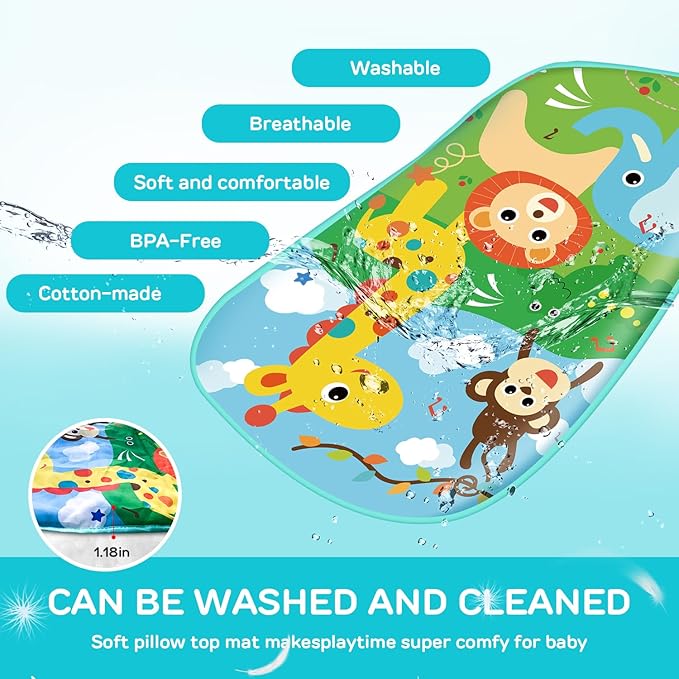 - Easy to Assemble: Setting up the baby tummy time play mat is a breeze, and it can be easily disassembled for convenient storage or travel. The sensory keyboard operates on batteries for hours of playtime.