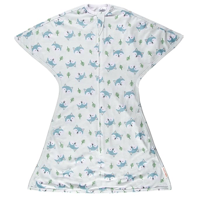 SleepingBaby Zipadee-Zip Transition Swaddle - Cozy Baby Swaddle Blanket with Zipper Convenience - Roomy Wearable Blanket for Easy Diaper Changes - Happy Wolf, Medium (6-12 Month)