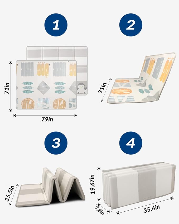 - 【Foldable & Portable】Our foldable baby play mat easily folds in seconds and comes with a portable carry bag for easy storage or travel