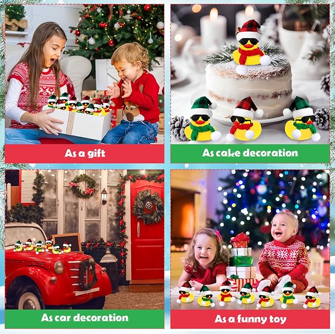 - Proper Size and Easy to Grip: the Christmas ducks measure about 2.17 x 1.77 inches/ 5.5 x 4.5 cm, appropriate size to grip, play, and carry around; Due to their proper size, the ducks can also be conveniently stored in pockets, handbags, storage boxes and so on