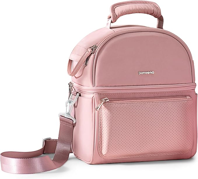Sunveno Breastmilk Cooler Bag Set with 2 Ice Packs & Detachable Insulation Box, 15-Hour Cold Retention Foil-Lined Leak-Proof Tote Fits 3 Baby Bottles for On-The-Go Pumping Moms, Daycare & Travel,Pink
