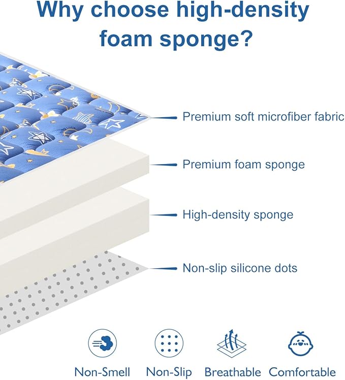 - Cushioning and Non-slip: High-density foam absorbs 30% more impact than regular playpen mats. Diamond-textured backing prevents 97% of accidental slips – the safest floor mat for babies 0-12 months learning to stand.