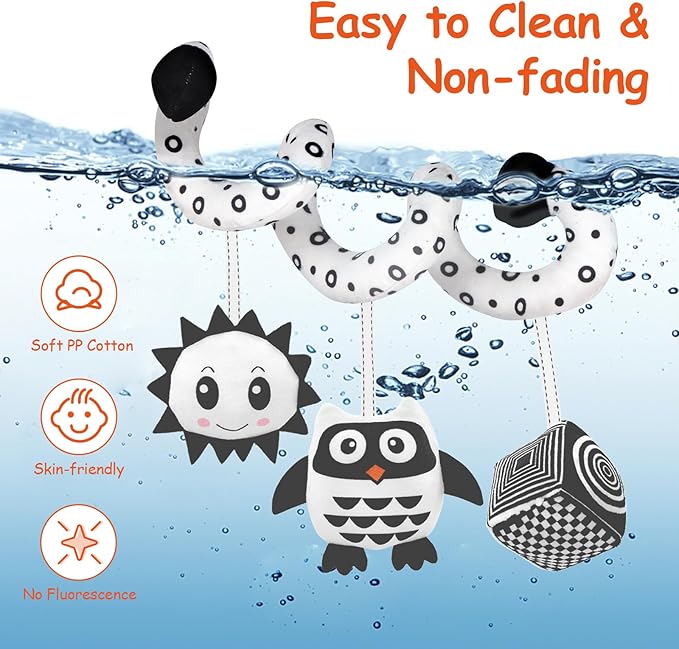 - GREAT GIFT FOR BABY - Our baby spiral activity toy with cute black and white bee design is the best choice for every mom-to-be and a great idea for baby showers, Children's Day, birthdays, Thanksgiving, Christmas and more Good gift choice.