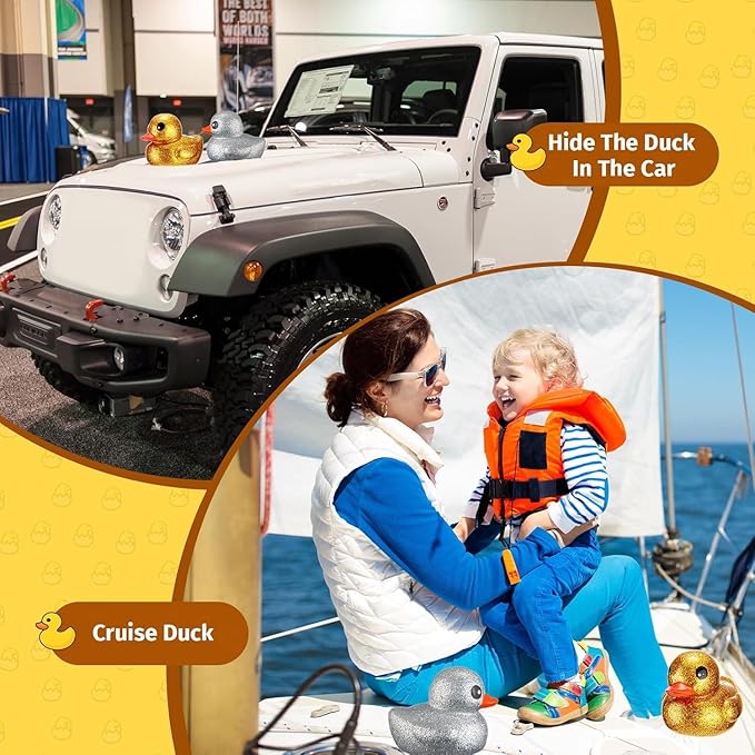 - Package Includes: the package includes 2 pieces of big rubber ducks, one in gold glitter and one in silver glitter; Whether for a birthday party, summer theme party, or as home and bathroom decor, these rubber ducks would add a delightful glow to setting