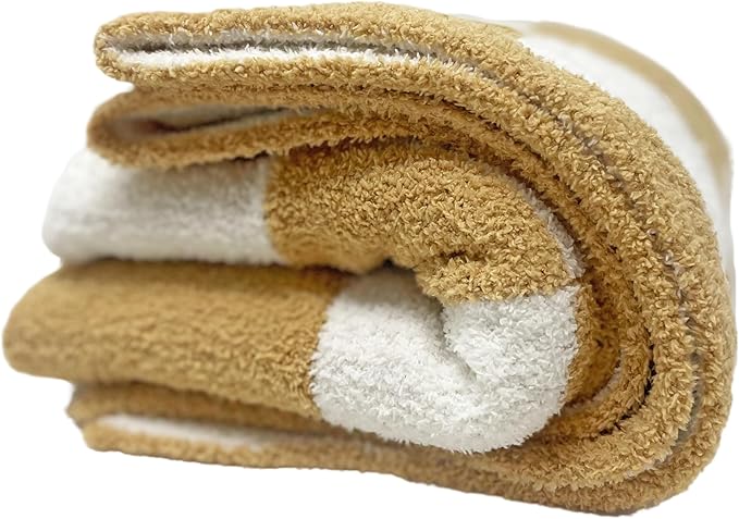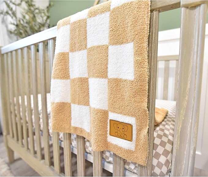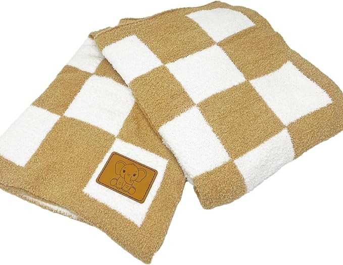 Checkered Baby Blanket 28"x40" - DreamSoft Knit Throw for Crib, Stroller or Car Seat - Soft Receiving Blanket/Newborn Nursery Gift Essential for Toddler, Infant, Kids, Boys & Girls (Tan/White)