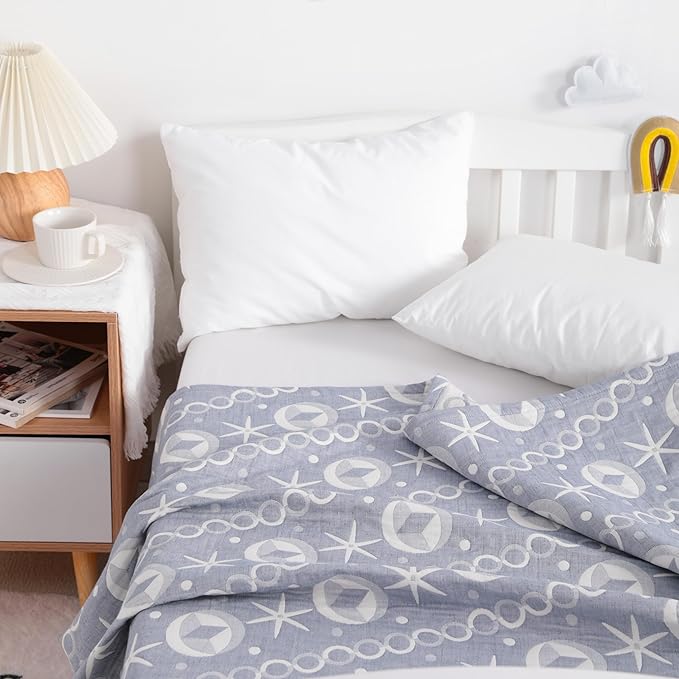 NTBAY 3 Layer Toddler Blanket, Muslin Cotton Jacquard Bed Blankets, Lightweight Thermal Baby Blanket, Super Soft and Warm Crib Blanket for All Seasons, Decoration Gift, 30"x40", Blue Starfish