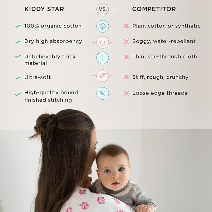 - 🌿 100% ORGANIC COTTON – PURE COMFORT FOR BABY: Crafted from natural cotton, these burp cloths are soft, breathable, and gentle on even the most sensitive skin. Free from all harmful substances, they offer peace of mind for parents and pure comfort for little ones.