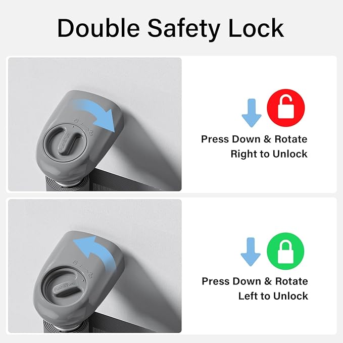 - Safety Double Lock Design: Double Locking Mechanism for complete safety - press down & rotate left to lock and rotate right to release the mesh. And when it's not in use, the baby gates for doorways can be discreetly and quickly rolled up. A versatile home safety solution that saving your space and time