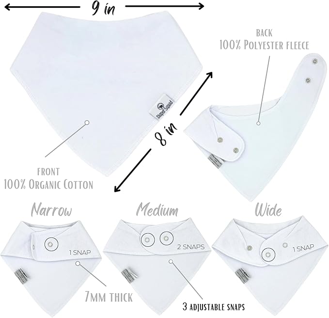 • Adjustable with 3-stage Snaps – Our gender neutral baby bibs are designed to adapt as your baby grows, with adjustable nickel-free snaps that can withstand tugging and pulling from a fussy infant. These baby bibs fit newborns to toddlers at the recommended 0 to 36 months.
