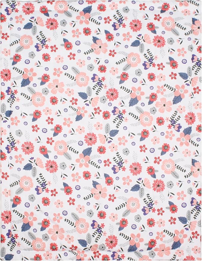 CaSaJa 4-Piece Crib Bedding Set for Boys and Girls, Nursery Baby Bedding Set Including Quilted Comforter with Fitted Crib Sheet and Changing Pad Covers, Reversible Quilt Design, Petals Flying