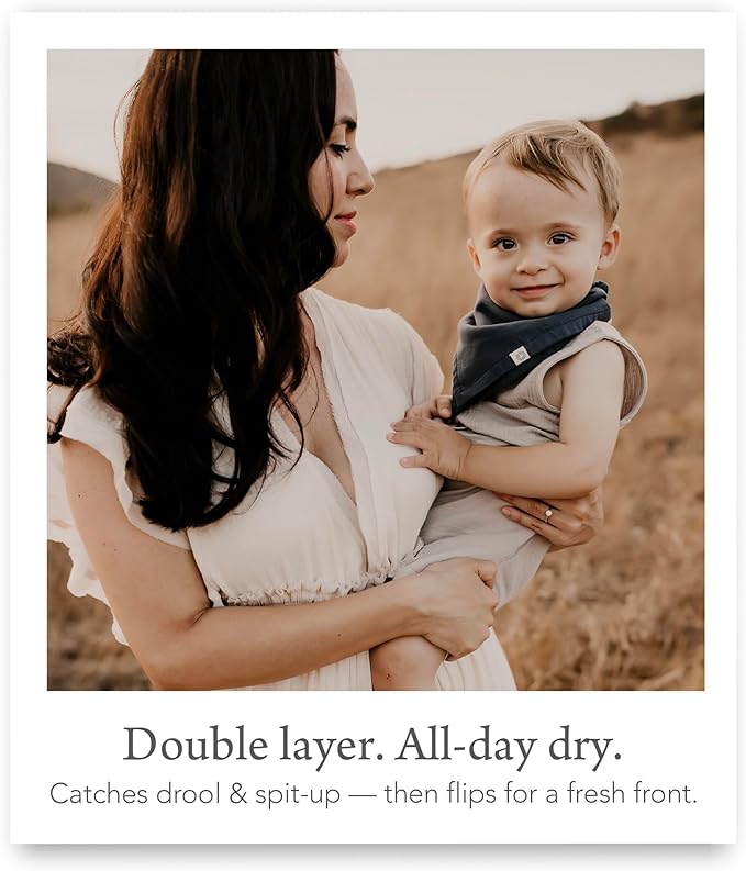 • MADE TO WEAR ALL DAY – Designed to drape like a scarf, not a bib. Our bandana drool bib catches spit-up and teething messes without hiding your baby’s outfit — soft, breathable, and stylish enough to leave on between meals.