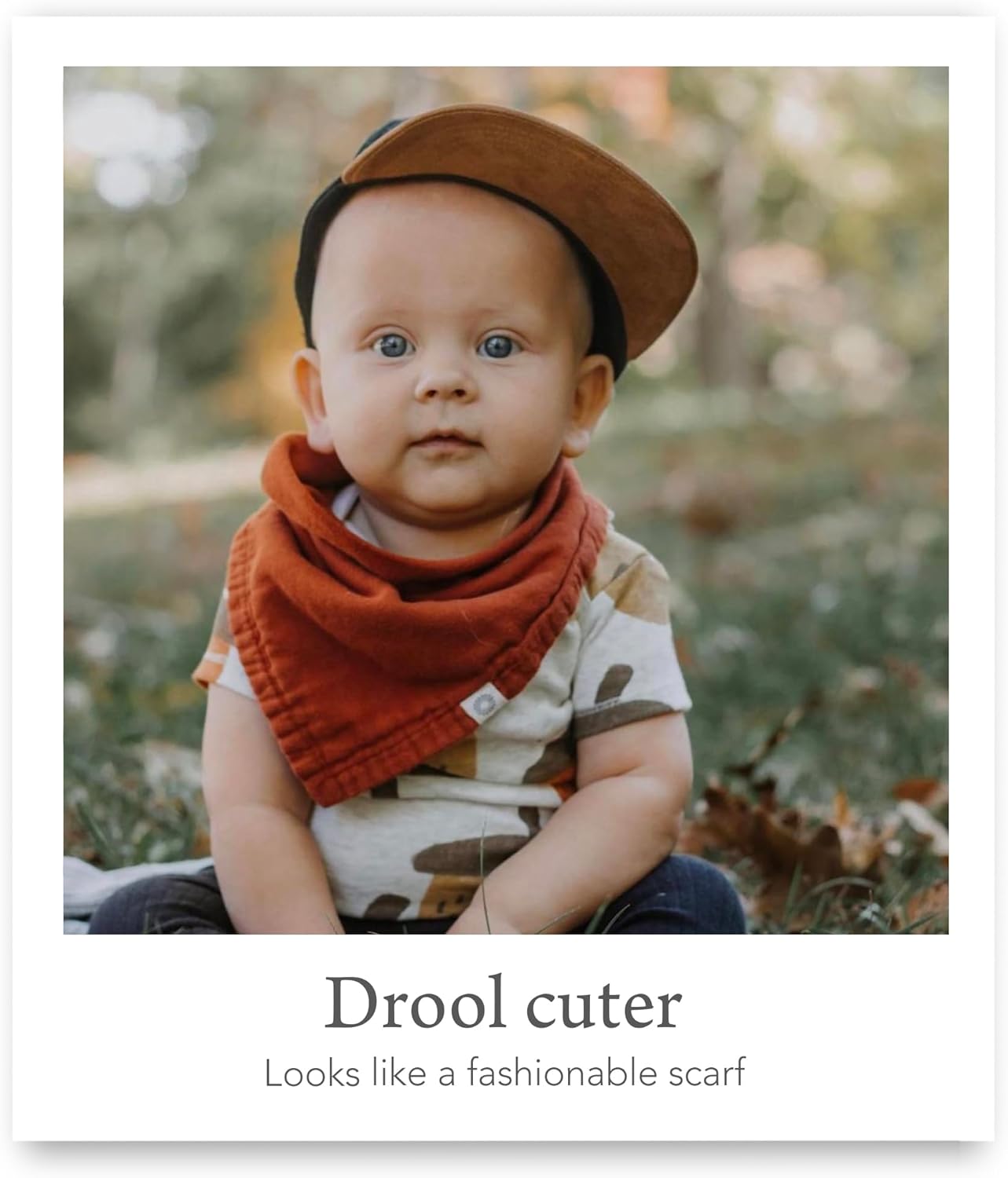 - SOFT AND ABSORBENT: Each muslin drool bib features eight breathable layers of gauze cotton that absorb teething drool and feeding spills without added bulk.