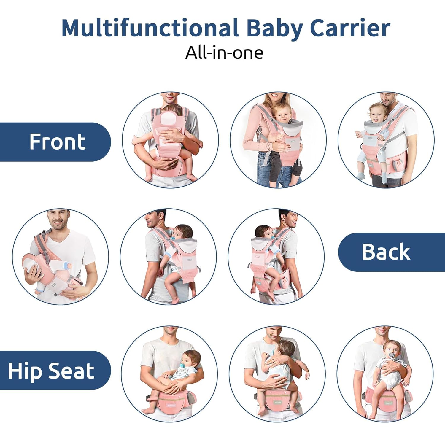Baby Carrier with Hip Seat, Ergonomic M Position 6in1 Baby Carrier Newborn to Toddler,Head Support and Breathable Mesh Newborn Carrier,Adjustable Baby Holder Carrier for Dad&Mom-Pink
