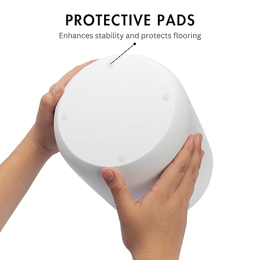 - Protective Pads - The inclusion of four rubber protective pads on the bottom of our small desk trash bin not only safeguards your flooring but also enhances stability.
