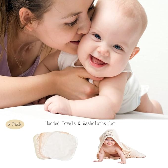 - ❤ PERFECTLY SIZE: 1 Hooded baby towels (30" X 30") and 5 washcloths (10" X 10"), The hooded towel not too large or deep so it does not cover baby's face, Unisex, Not only perfect for baby, also for whole family.