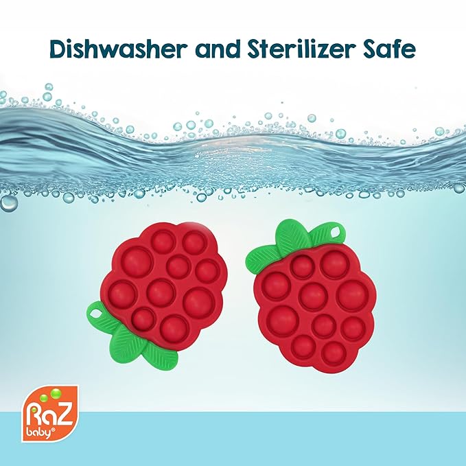 - Easy to Clean – The RaZberry Pop Strawberry Teether is dishwasher and sanitizer safe for hassle-free cleaning. Simply rinse, sanitize, or toss it in the dishwasher to keep it fresh and ready for your little one’s teething relief.