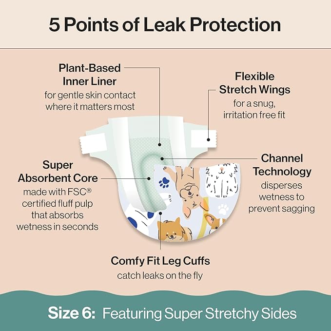 - OUR BEST FIT YET: Designed to move with your baby, Honest Clean Conscious Diapers feature comfy fit leg cuffs to catch leaks on the fly and flexible, stretchy wings that provide a snug, irritation-free fit. The super cute prints are an added bonus