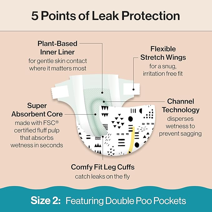 - OUR BEST FIT YET: Designed to move with your baby, Honest Clean Conscious Diapers feature comfy fit leg cuffs to catch leaks on the fly and flexible, stretchy wings that provide a snug, irritation-free fit. The super cute prints are an added bonus
