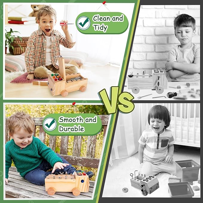 - Nature material Sensory Toys: Made from premium-quality wood and featuring bright, colorful LED lights, screwdriver board,our busy board is not only safe and durable for children, but it's also a high-quality and long-lasting investment for parents. Ideal for parents looking for toys that are both safe and durable.