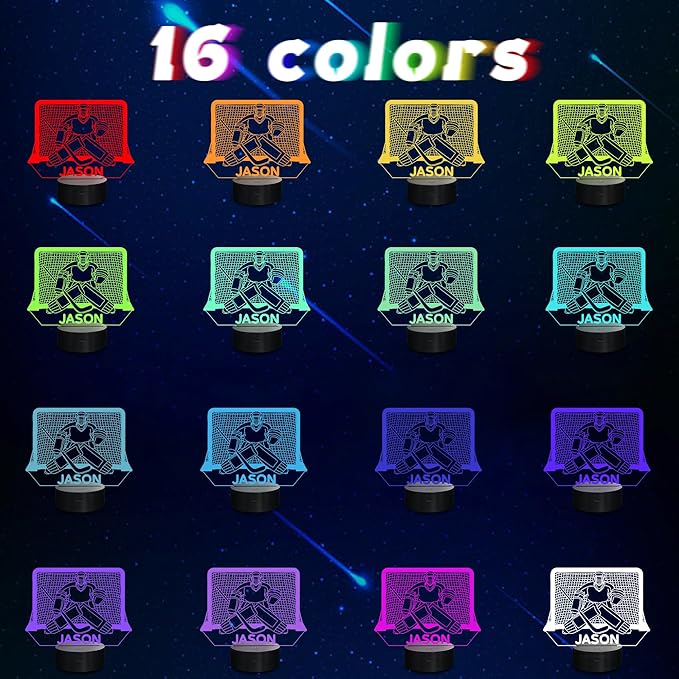 Customized Ice Hockey Night Light, 3D LED Optical Illusion Lamp with Remote Control and Timer, Perfect Christmas and Birthday Gift Idea for Boys, Kids, and Teen