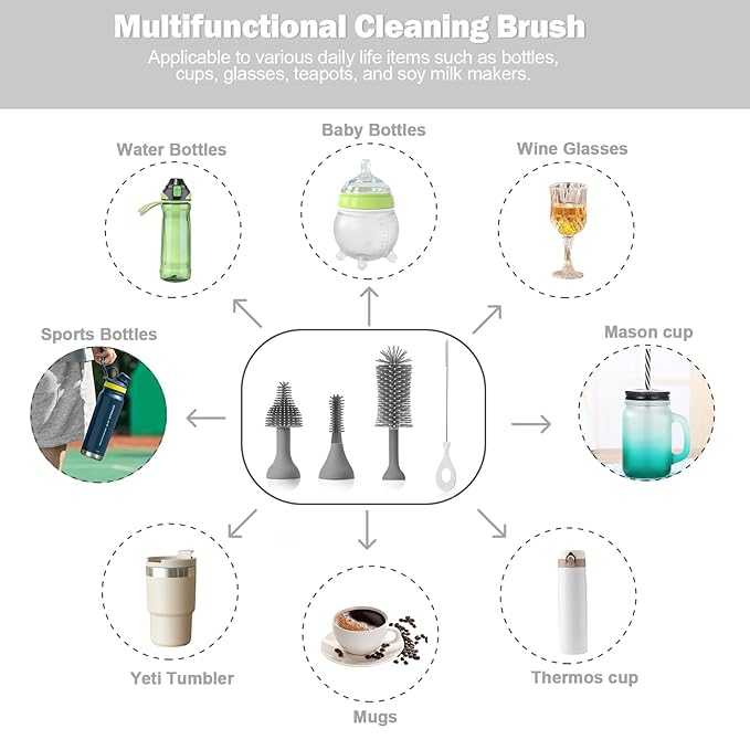 - [Waterproof&Rechargeable]:Electronic bottle brush cleaner is designed with water resistance, suitable for underwater use.Its innovative spinning bottle brush aids in effective, residue-free cleansing.