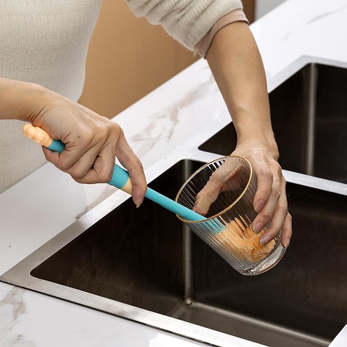 Chemimoso Adjustable Handle Length 10.5-13.8in Water Cup Cleaner Bottle Brush, Silicone Baby Bottle Brush, Pot Brush Cleaner, Blue