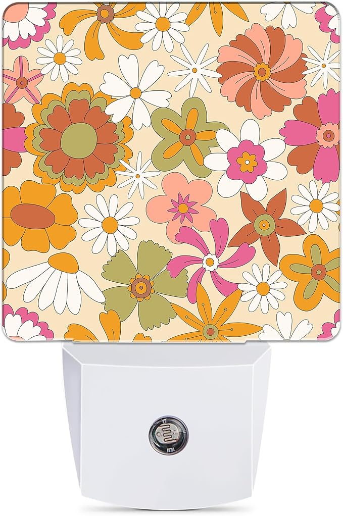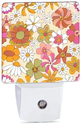 Vintage Boho Floral Night Light Plug in Wall Lamp Smart Dusk to Dawn Sensor for Home Decorative, Kids Room Bedroom Bathroom Kitchen Hallway Gifts
