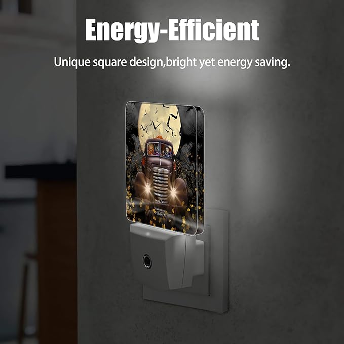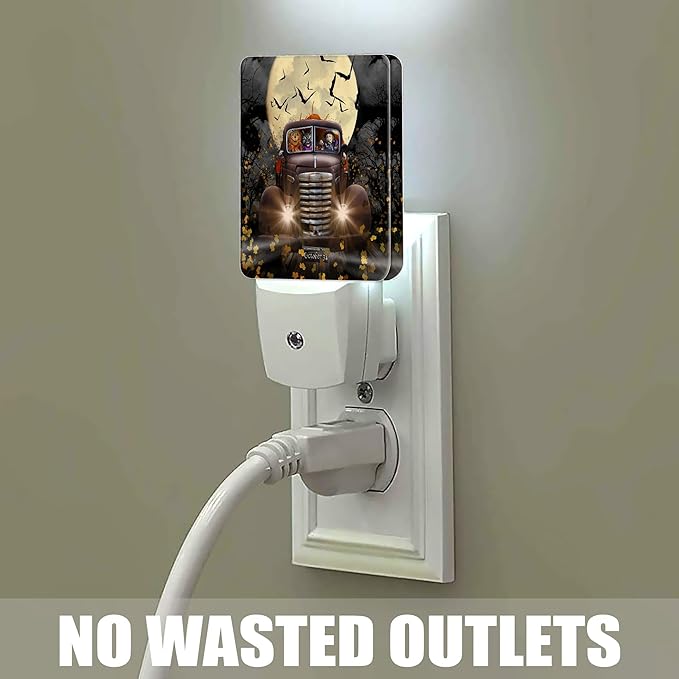 Halloween Truck Night Light, Witch Cat Pumpkin Night Lights Plug into Wall Decorations for Bedroom, Bathroom, Dusk to Dawn Sensor Nightlights for Girls Women Room Gifts