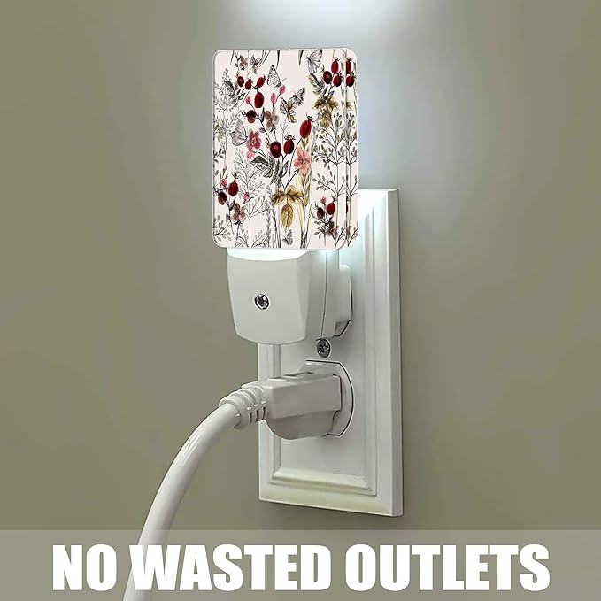 Vintage Flower Night Light, Butterfly Plug into Wall with Dusk to Dawn Light Sensors, Warm Nightlights for Bedroom, Bathroom, Hallway, Kitchen, Gifts Ideal for Girls Women