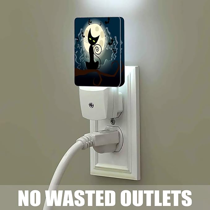 Black Cat Fantasy Halloween Night Light, Full Moon Bats Night Lights Plug into Wall Decorations for Bedroom, Bathroom, Kitchen, Dusk to Dawn Sensor Nightlights for Boys Girls Women Men Room Gifts