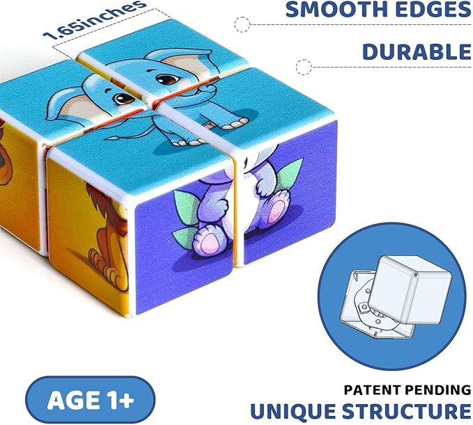 3D Magnetic Cubic Jigsaw Puzzle Toys for Toddlers, Large Building Blocks Cubes 1.65 Inches, Integrated with Magnets, 6 Patterns in Animal Theme