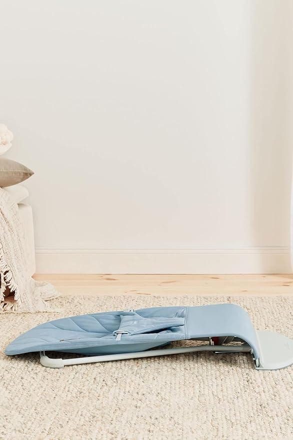 BabyBjörn Bouncer Bliss, Blue, Woven, Petal Quilt | 2-in-1 Adjustable Baby Bouncer Seat and Toddler Chair, Newborn to Toddler (8-29 lbs), 4 Positions, Lightweight & Portable