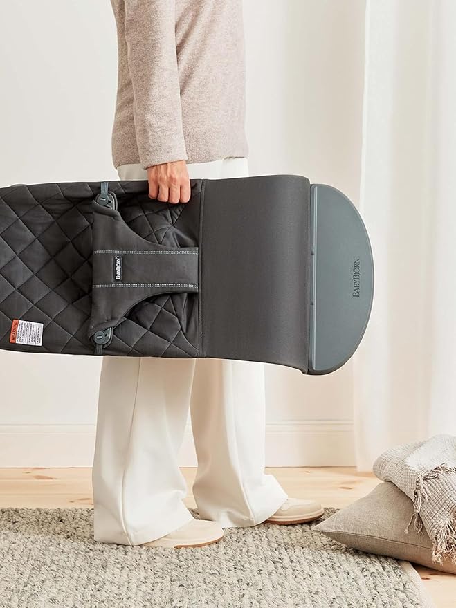 BabyBjörn Bouncer Bliss, Anthracite, Woven, Classic Quilt | 2-in-1 Adjustable Baby Bouncer Seat and Toddler Chair, Newborn to Toddler (8-29 lbs), 4 Positions, Lightweight & Portable