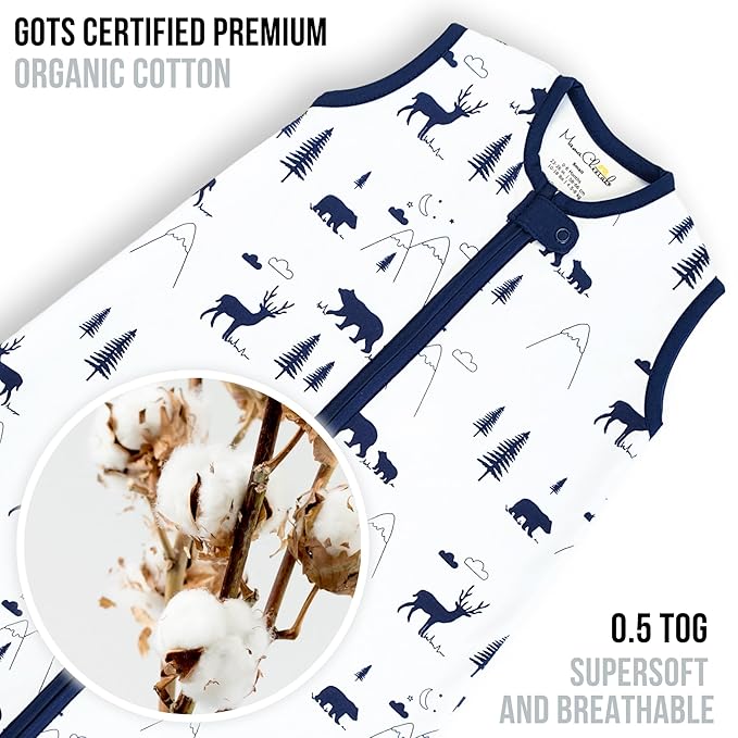 Mama Cheetah Baby Sleep Sack 0.5 TOG, Organic Cotton Baby Wearable Blanket with Two-Way Zipper, Swaddle Transition Baby Sleeping Bag for Newborn Infant Toddler Boy Girl, 12-18 Months