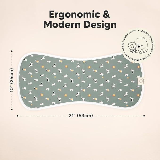 - The Figure-8 Full Shoulder Coverage - Our organic baby burp clothes for baby girls and baby boys, sized at 21" x 10", are wide enough to cover your shoulders. The unique figure-8 design prevents the burp rags from slipping.