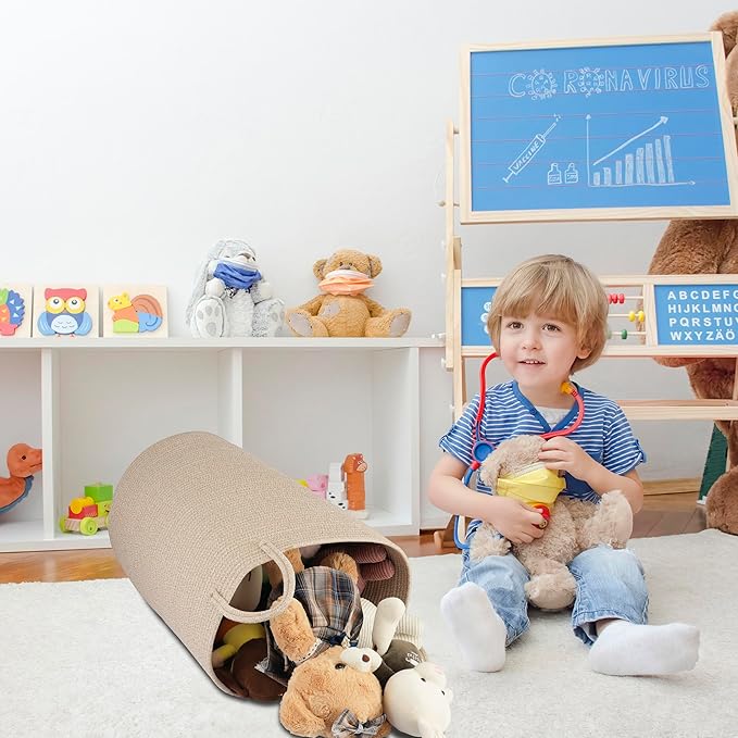 - Multi-purpose large tall rope basket: Our tall rope laundry hamper with handles measures 16"D x 22"H. It is designed as a laundry basket or dirty clothes basket but can be used for much more. You can use it as a blanket basket, toy basket, nursery hamper for girls or boys, throw pillow hamper basket, towel basket, and more. The usage possibilities are endless.