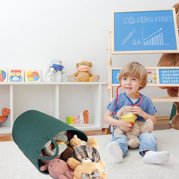 Cotton Rope Laundry Basket Hamper for Clothes Woven Storage Basket for Living Room Bedroom Boho Tall Rope Baskets for Blanket Toys Pillow Towels Baby Nursery Hamper Bin Large dark green