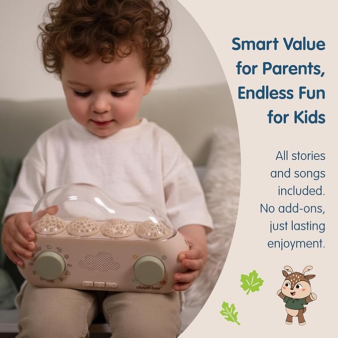 - Value & Longevity - Cloudbox comes all-inclusive, unlike other story dream machine books or toy box systems that require costly add-ons. With English/Spanish language options and no extra spend, it’s the ultimate kids story player and storybook projector for years of use.