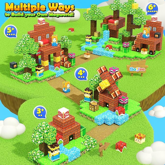 - 【QUALITY YOU CAN TRUST】 SOYEE magnetic blocks think more from the kid's perspective and can give kids a clear definition of design. Unlike other sets on the market, they will mislead kids and interfere with their imagination of the product. They have more educational value and can restore kids' definition of the world