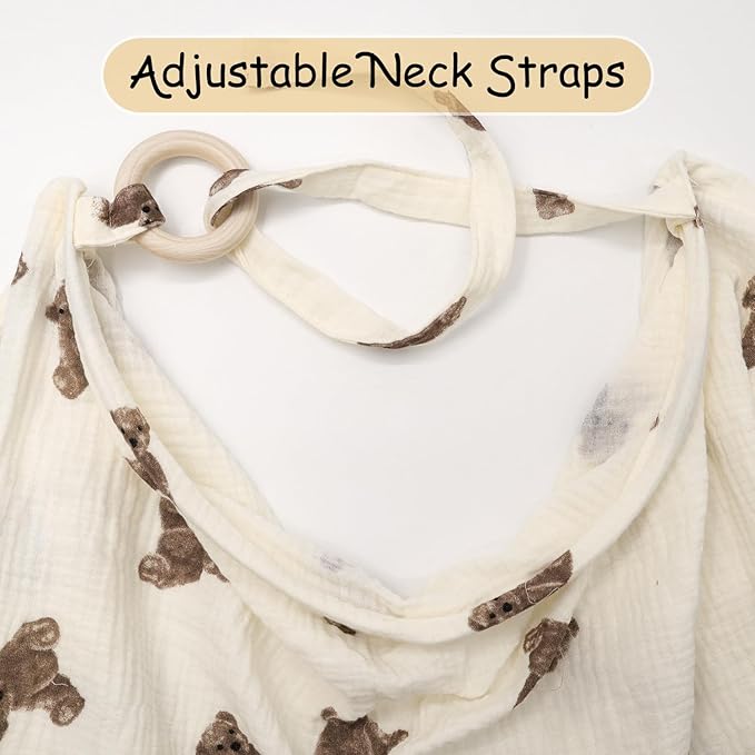 Muslin Nursing Cover for Baby Breastfeeding, Breathable 100% Cotton Breastfeeding Cover with Rigid Hoop for Mother Nursing Apron, Multi-use Carseat Canopy (Bear)