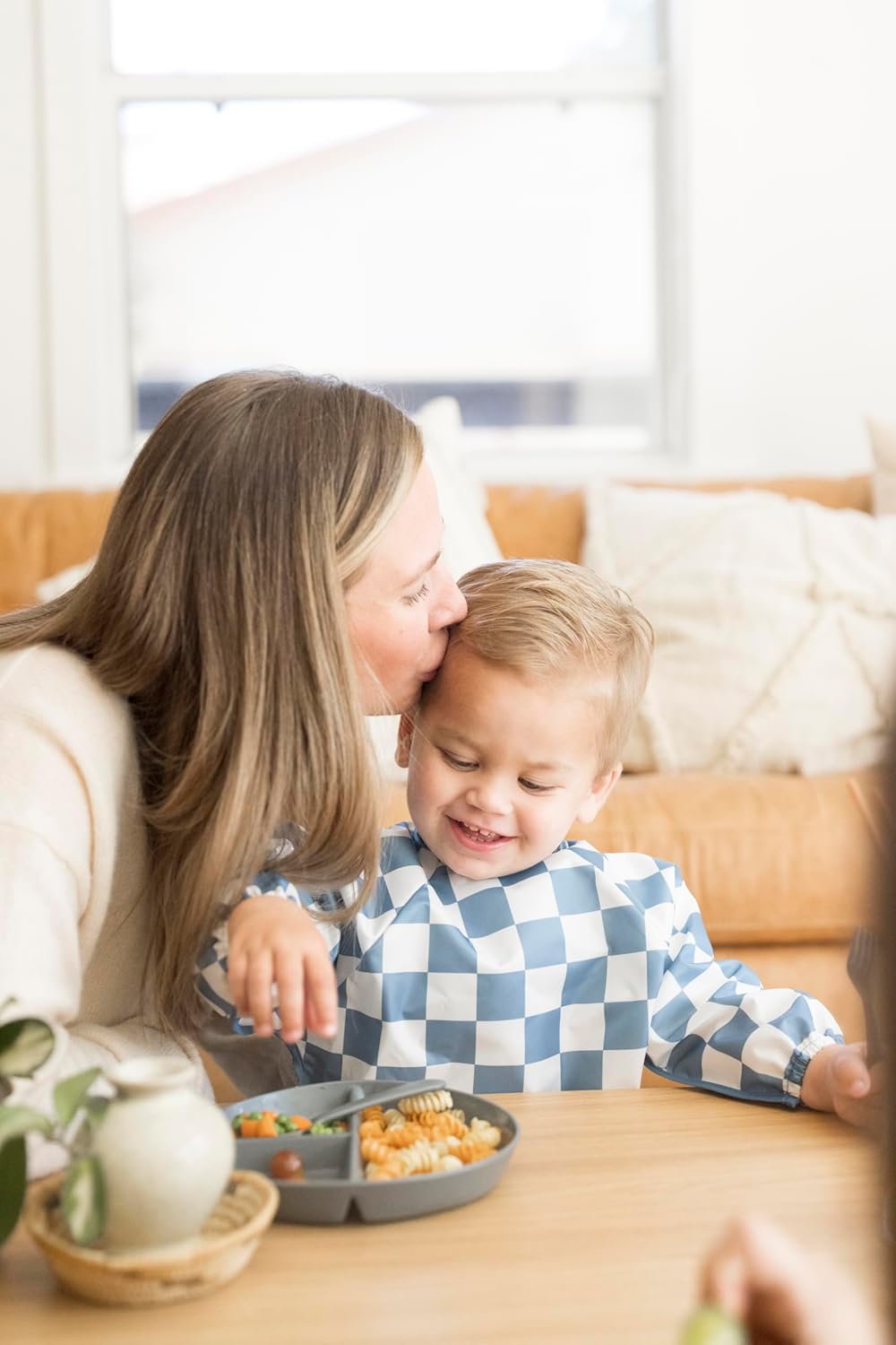 - TRAVEL BUDDY:The must-have baby feeding essentials for on-the-go parents! Our long sleeve waterproof smock bib (fits 6-24 months) is a versatile wipeable bibs with scratch-free closures and 360 degrees puree-proof protection.This bib with sleeves is perfect for plane or car meals, It folds flat in diaper bags,handles baby-led weaning messes and makes a great gender-neutral baby shower gift.Ideal for parents needing baby eating essentials on the go.